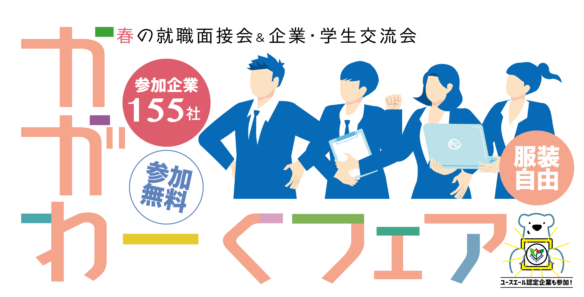 「かがわーくフェア」は、香川県内の企業と就職希望者が直接出会い・交流するための就職支援イベントです。学生、既卒者、中途採用希望者などを対象に、対面で企業と面談・交流できる機会を提供する就職イベントです。